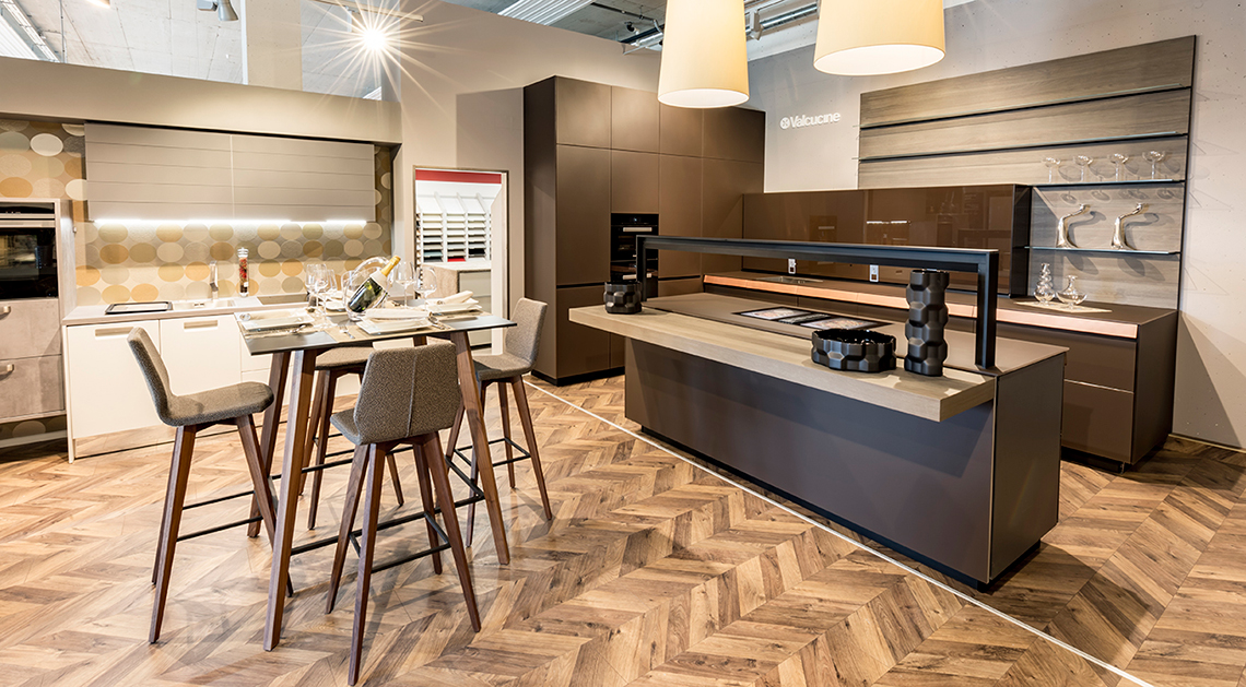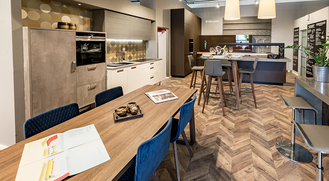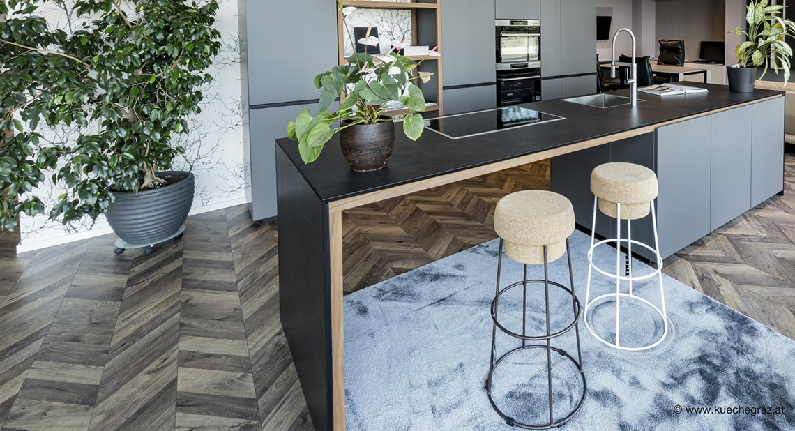 奧斯瓦德的創(chuàng)意廚房展示區(qū)采用了奧地利凱得集團(tuán)的魚骨拼地板進(jìn)行鋪裝。凱得用略帶設(shè)計(jì)感的藝術(shù)化處理,打造出全新的魚骨拼花地板,既像魚骨,又像連綿不斷的山峰,立體感十足。同時(shí)它還有防水特性,不藏灰,抑菌抗污,讓地板時(shí)刻保持干凈整潔,省心又舒適。這種全新的魚骨拼接效果讓廚房更加優(yōu)雅。精致的風(fēng)格,舒適觸感,時(shí)尚設(shè)計(jì)讓人眼前一亮,帶來全新的廚房生活體驗(yàn)。
