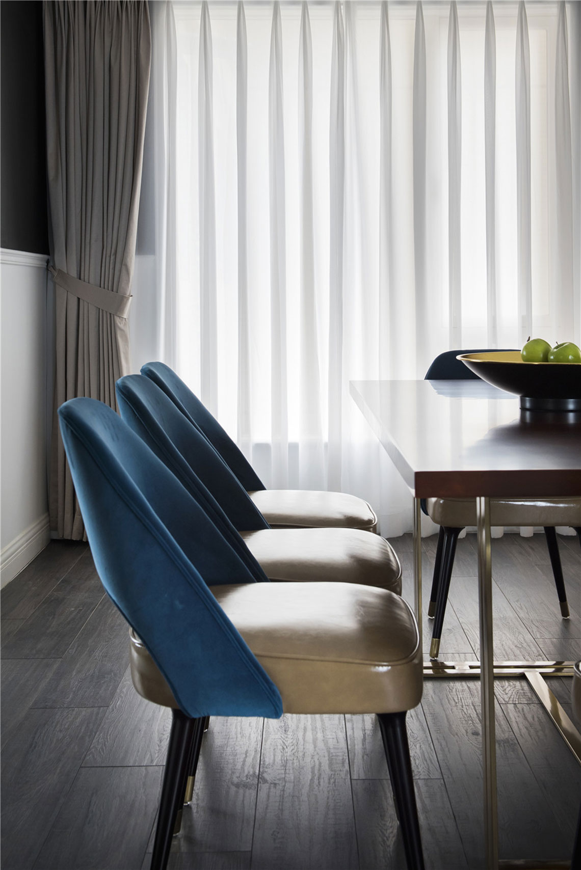 棕藍(lán)兩色相間的貝殼餐椅