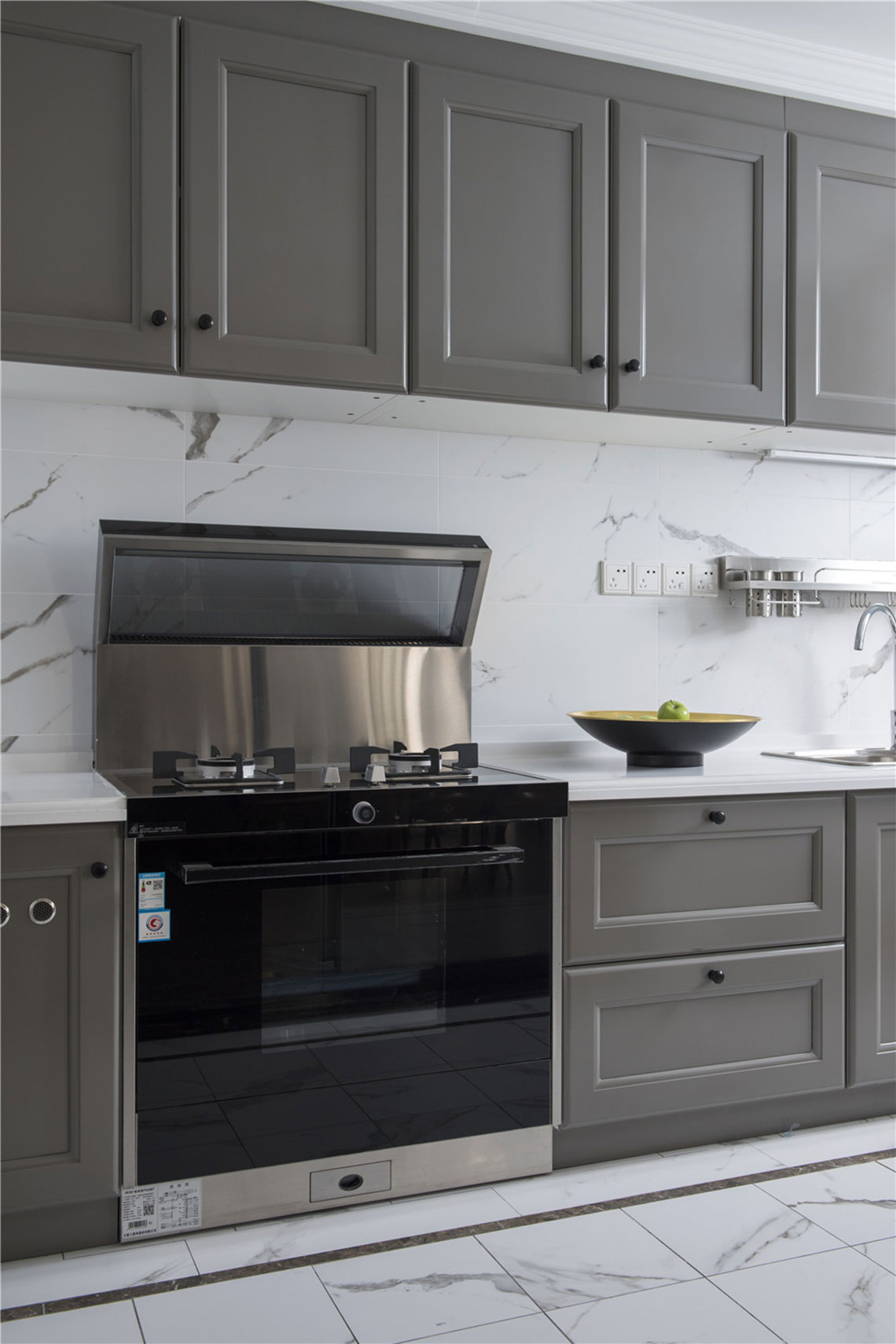 右側(cè)一面墻的灰白色柜子
