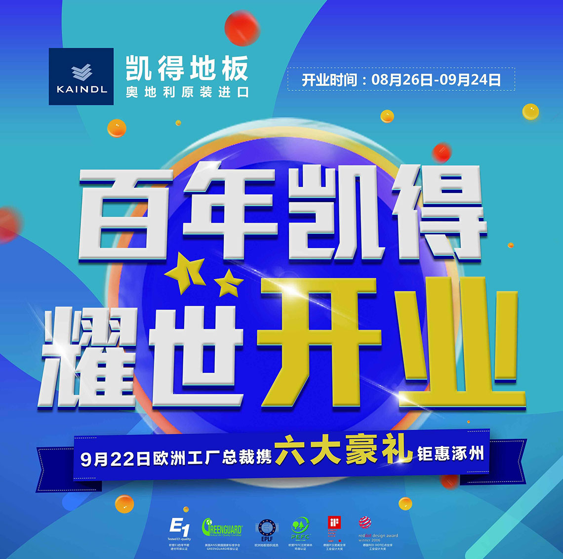 作為一個能牢牢把握住市場脈搏的地板品牌,百年凱得洞見了涿州環(huán)京熱點(diǎn)區(qū)域的價值,9月22日將迎來涿州店的盛大開業(yè)!為了讓更多人感受到凱得地板的品牌魅力,9月22日歐洲工廠總裁攜六大豪禮鉅惠涿州!