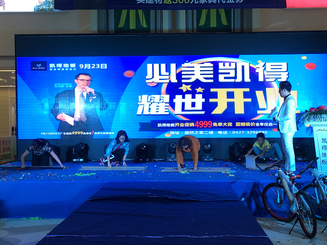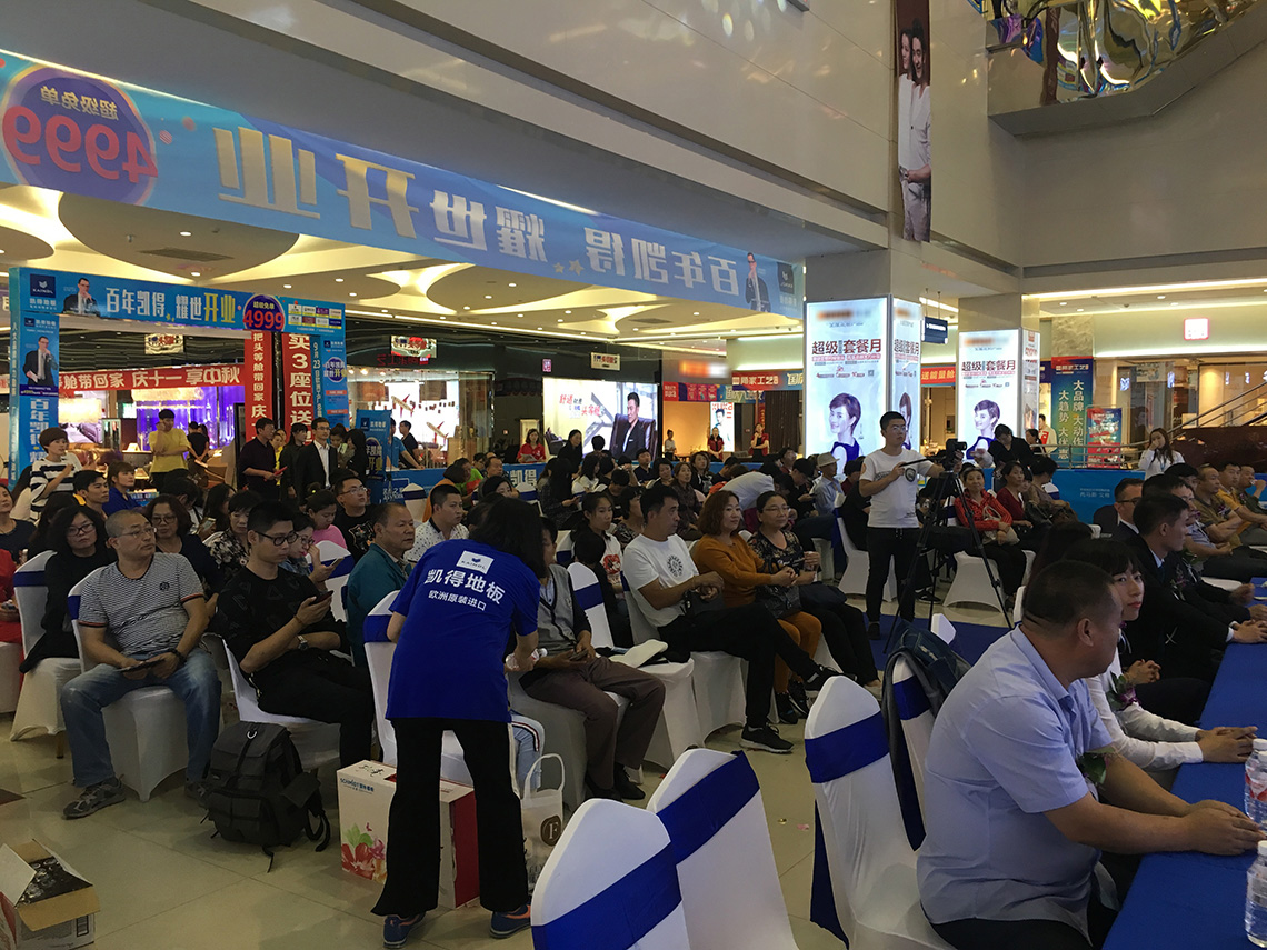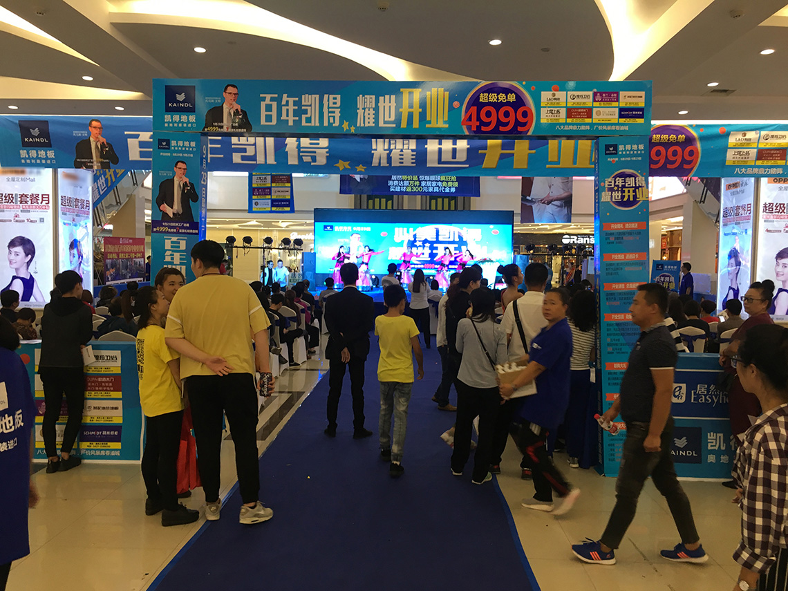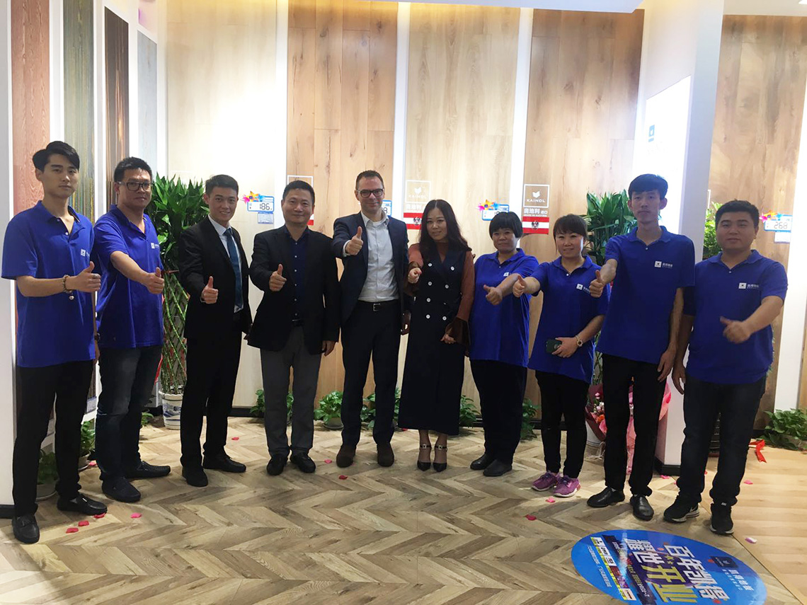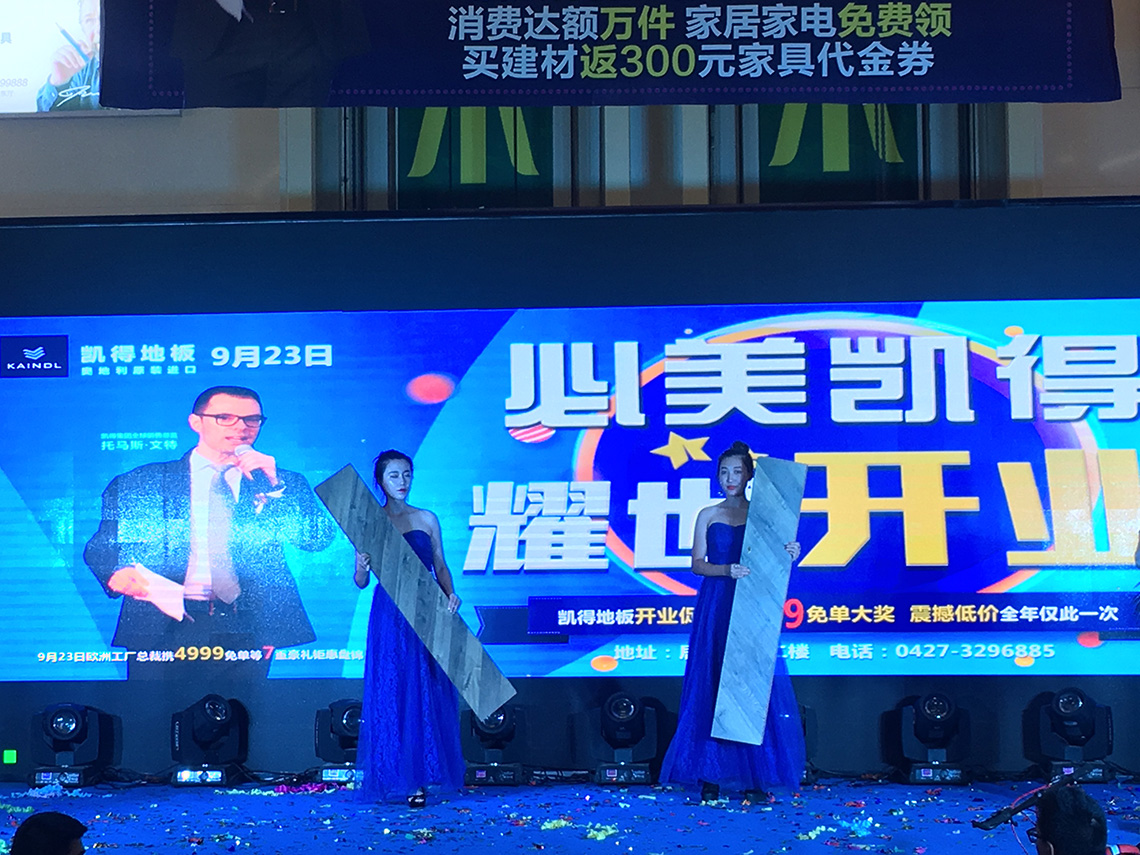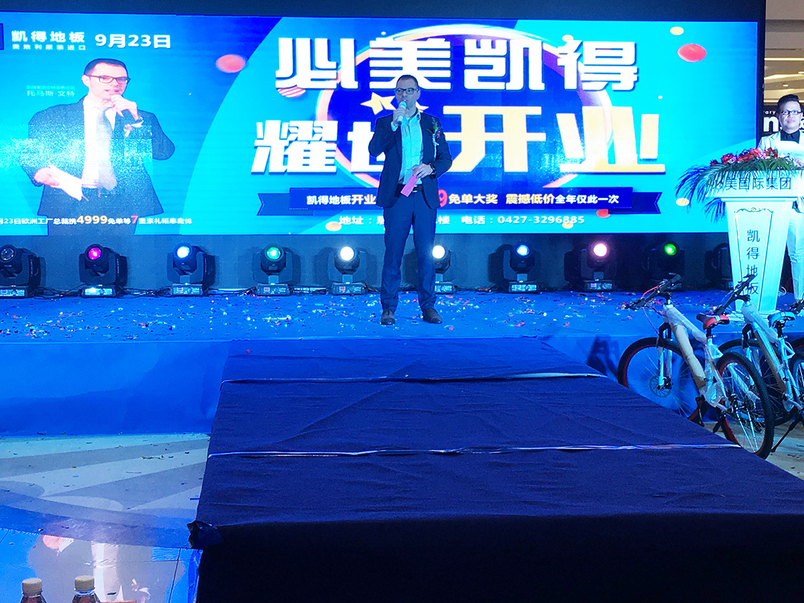 活動(dòng)現(xiàn)場(chǎng),孫總和Thomas Winter等嘉賓上臺(tái)為新店舉行開(kāi)業(yè)剪彩儀式,和現(xiàn)場(chǎng)觀眾一起見(jiàn)證凱得地板盤(pán)錦店的歷史性時(shí)刻!