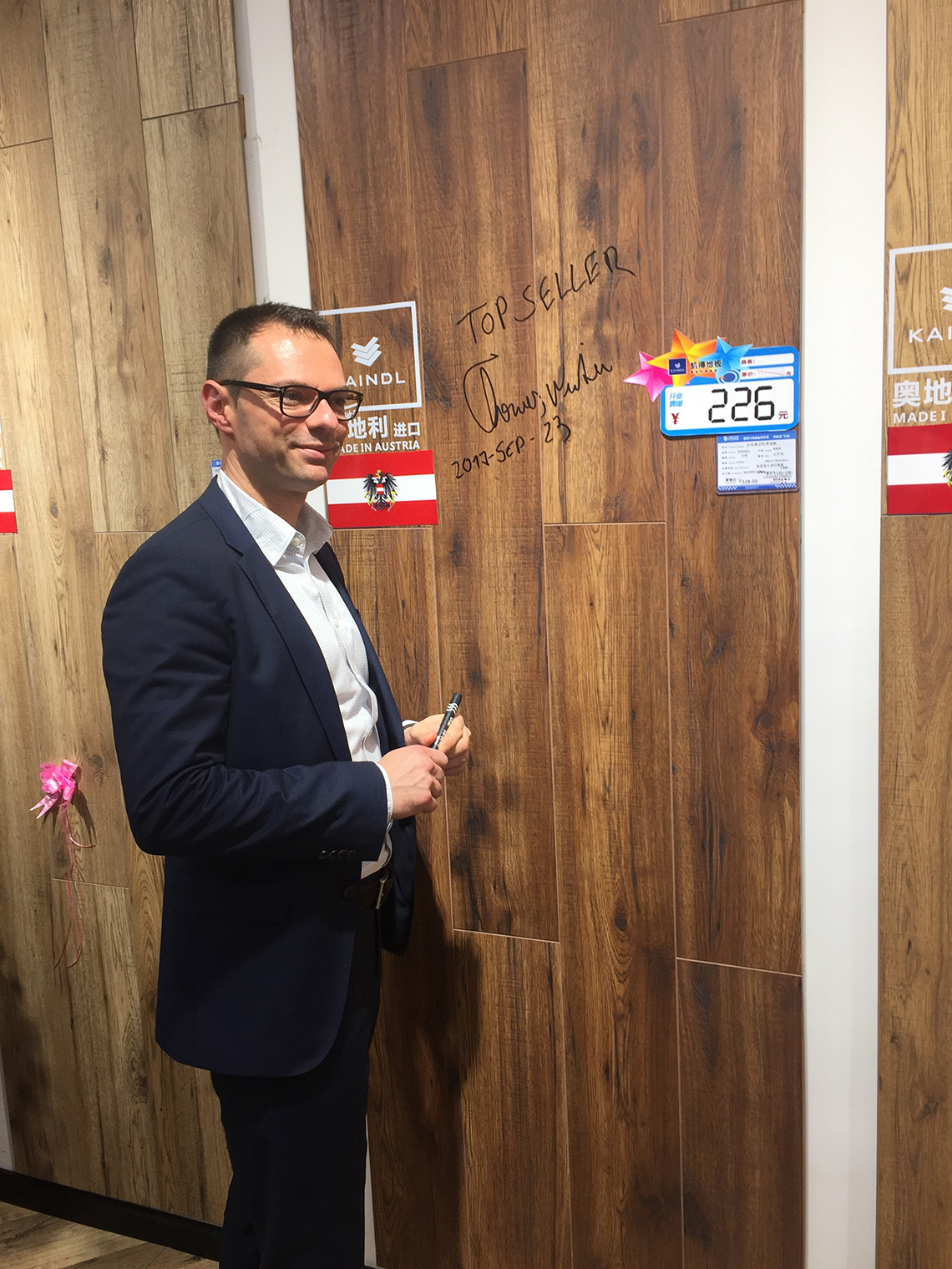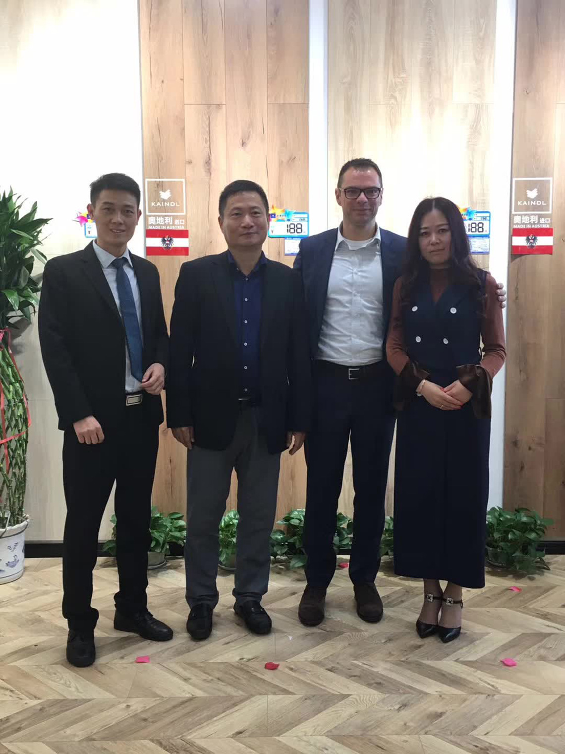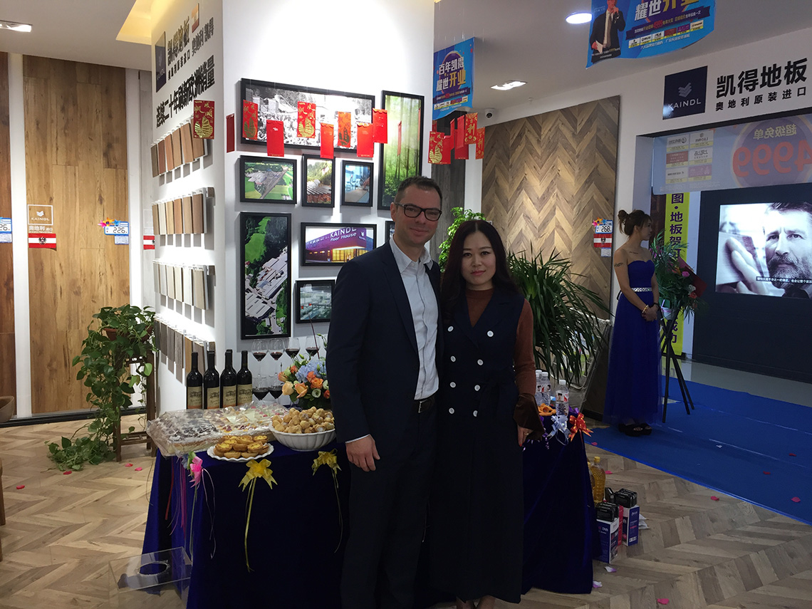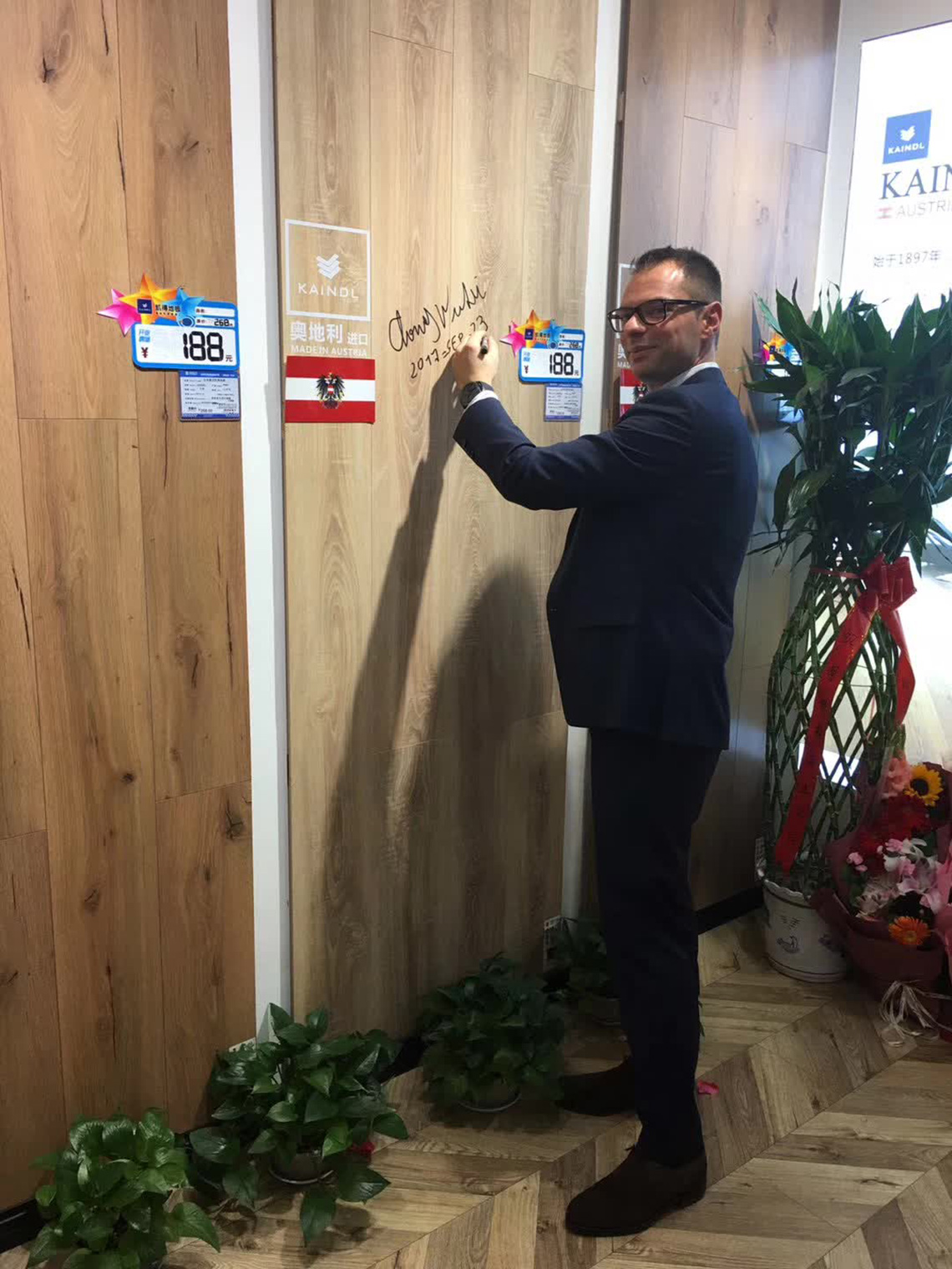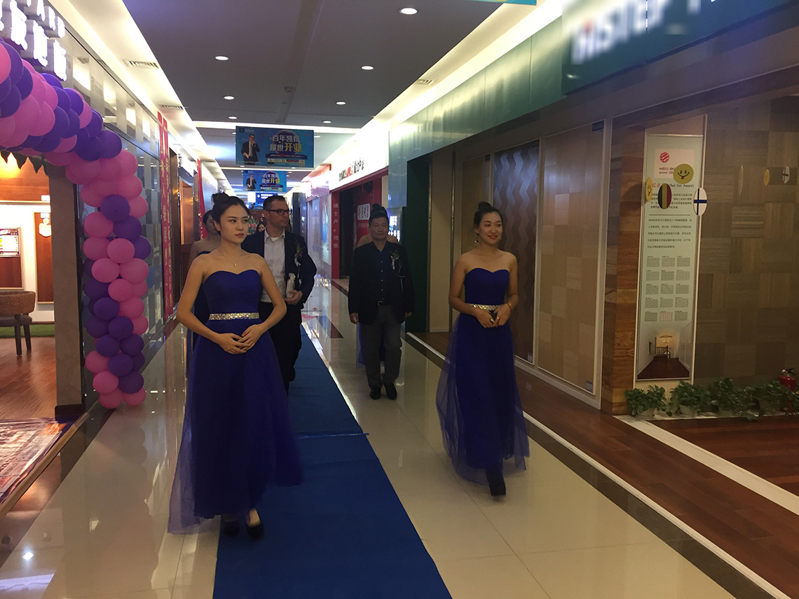 活動(dòng)現(xiàn)場(chǎng),孫總和Thomas Winter等嘉賓上臺(tái)為新店舉行開(kāi)業(yè)剪彩儀式,和現(xiàn)場(chǎng)觀眾一起見(jiàn)證凱得地板盤(pán)錦店的歷史性時(shí)刻!