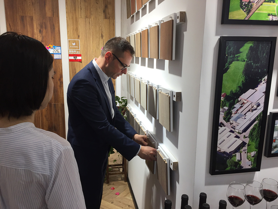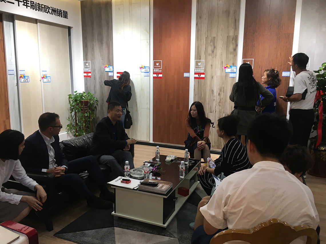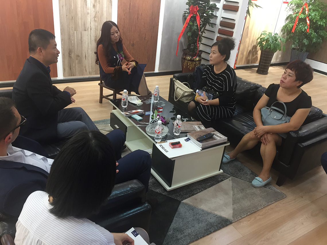 在凱得地板門(mén)店,孫總和消費(fèi)者暢聊凱得環(huán)保地板,了解當(dāng)下消費(fèi)者的需求。