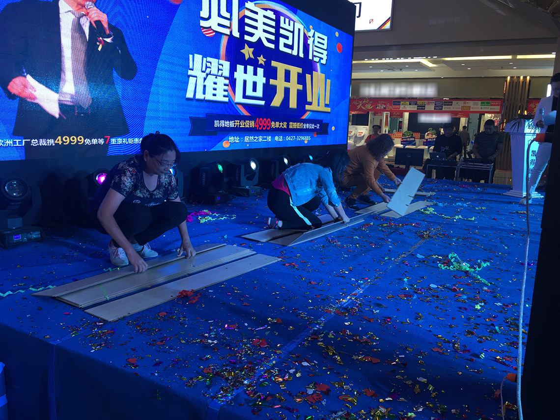 現(xiàn)場(chǎng)我們還邀請(qǐng)了觀眾上臺(tái)進(jìn)行地板拼接游戲,讓大家親身感受凱得地板簡(jiǎn)易的鋪裝過(guò)程,體驗(yàn)歐洲極簡(jiǎn)主義帶來(lái)的便利。凱得地板采用的是歐洲新一代圓弧免膠鎖扣,地板的承重力和拉力變得十分強(qiáng)。觀眾拼接完后都表示這樣的免膠鎖扣真的能使地板接縫緊密結(jié)合,安裝非常迅速。